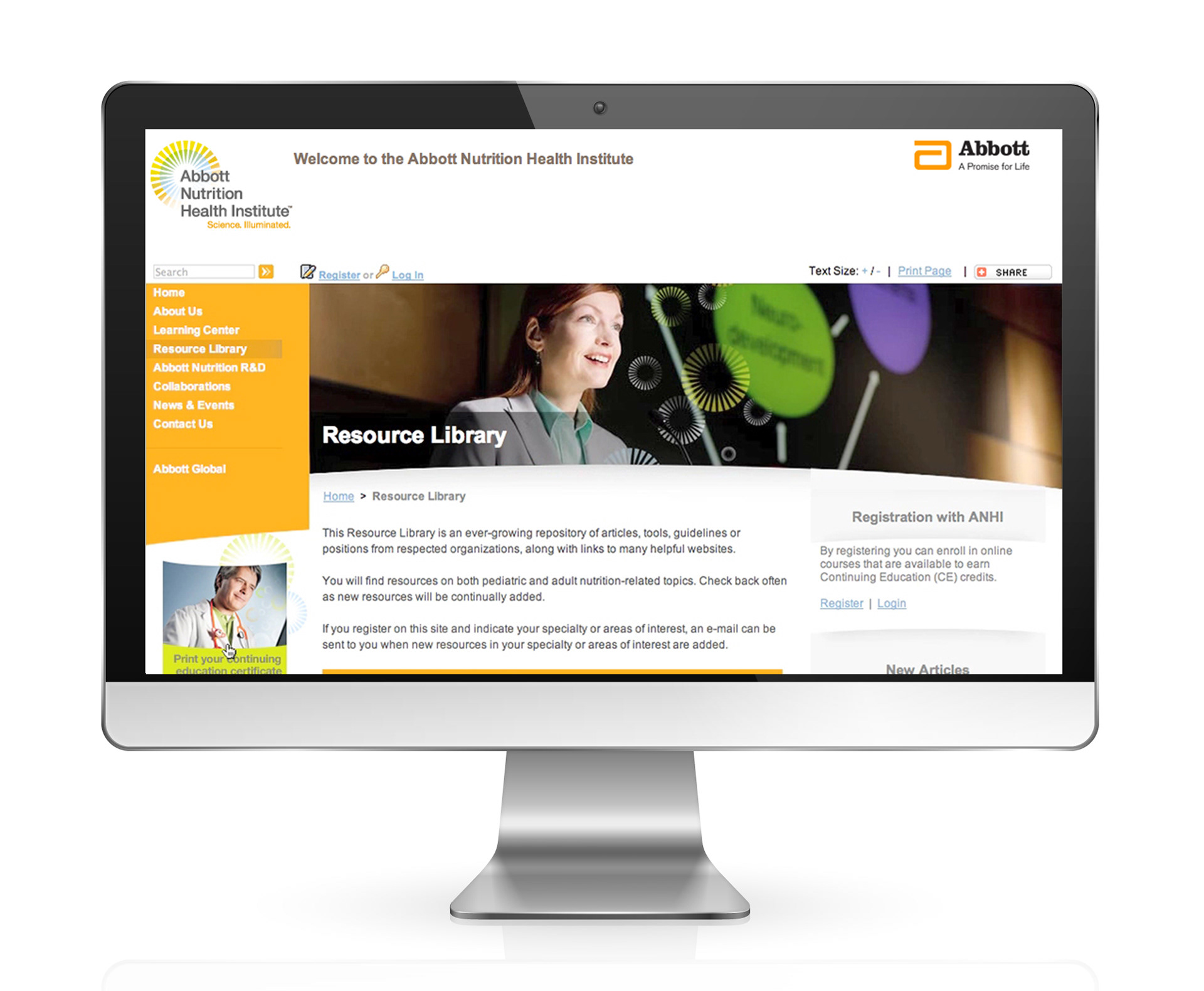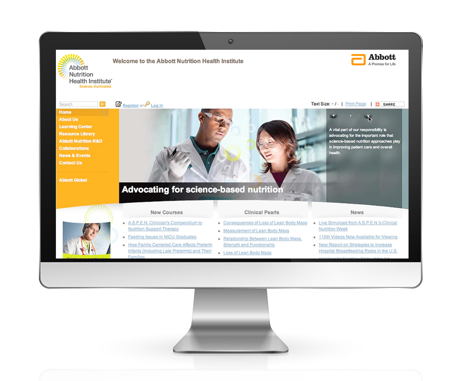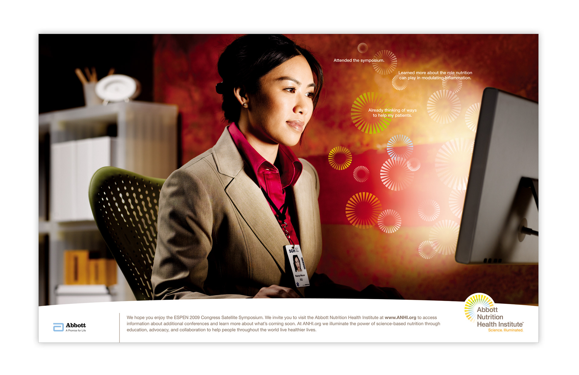 Abbott Nutrition Health Institute was created to foster education, research, and scientific collaboration. This mission was brought to life through positioning, branding, and a comprehensive campaign dramatizing the theme “science illuminated”. The ANHI website was created to became a destination for thought leaders, researchers and support professionals. The site featured on-line continuing education courses, a resource center, and extensive coverage of the latest clinical trials and conferences. ANHI Credits: Senior Art Director Sebastian Pallini Copywriter Andy Conroy Senior Interactive Designer Dan Weatherby Interactive Designer Eric Hughes Senior Copywriter Sean Bice