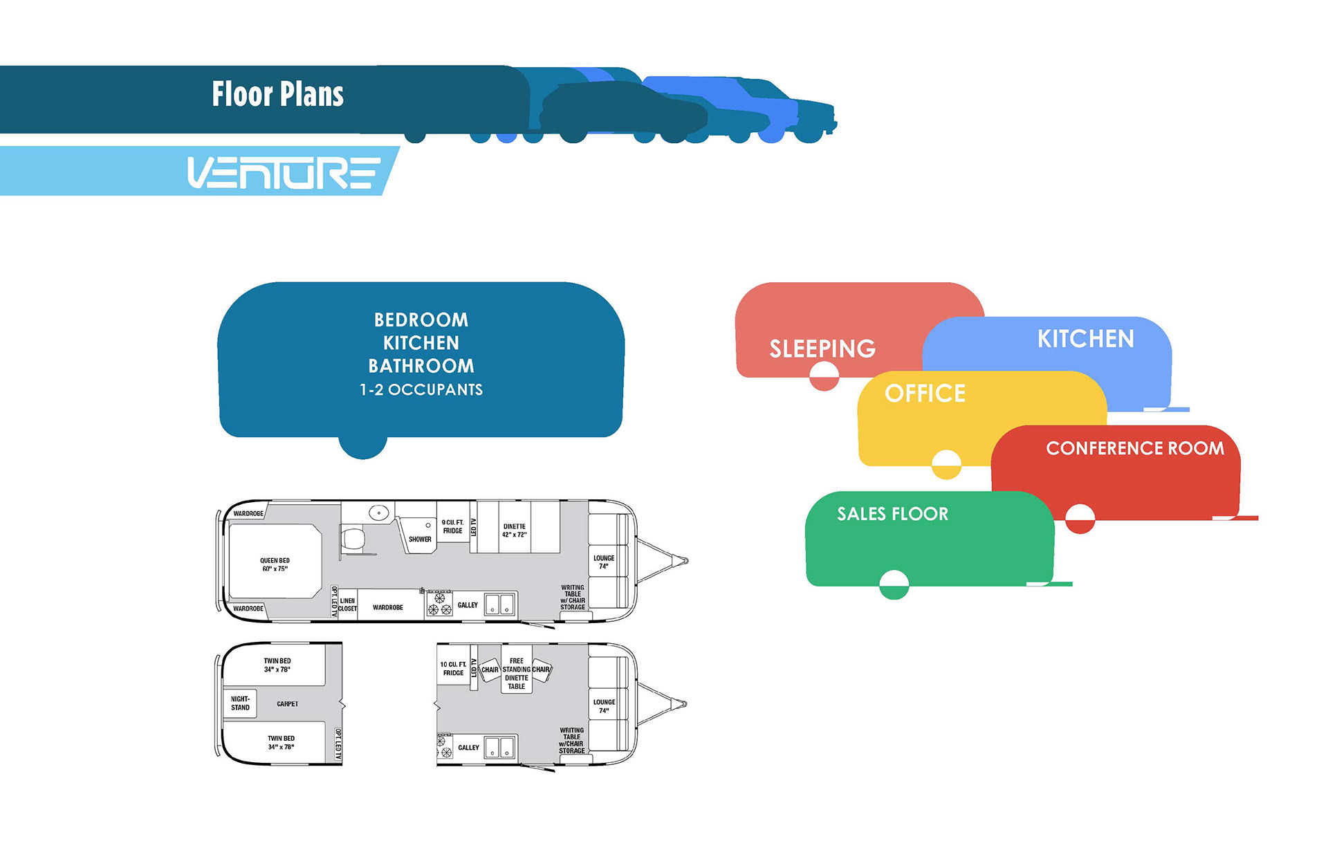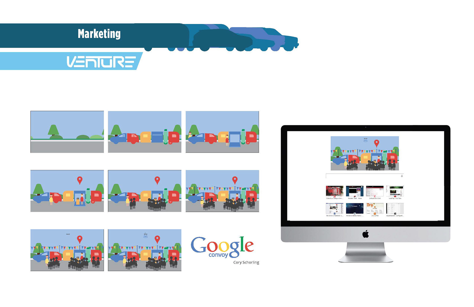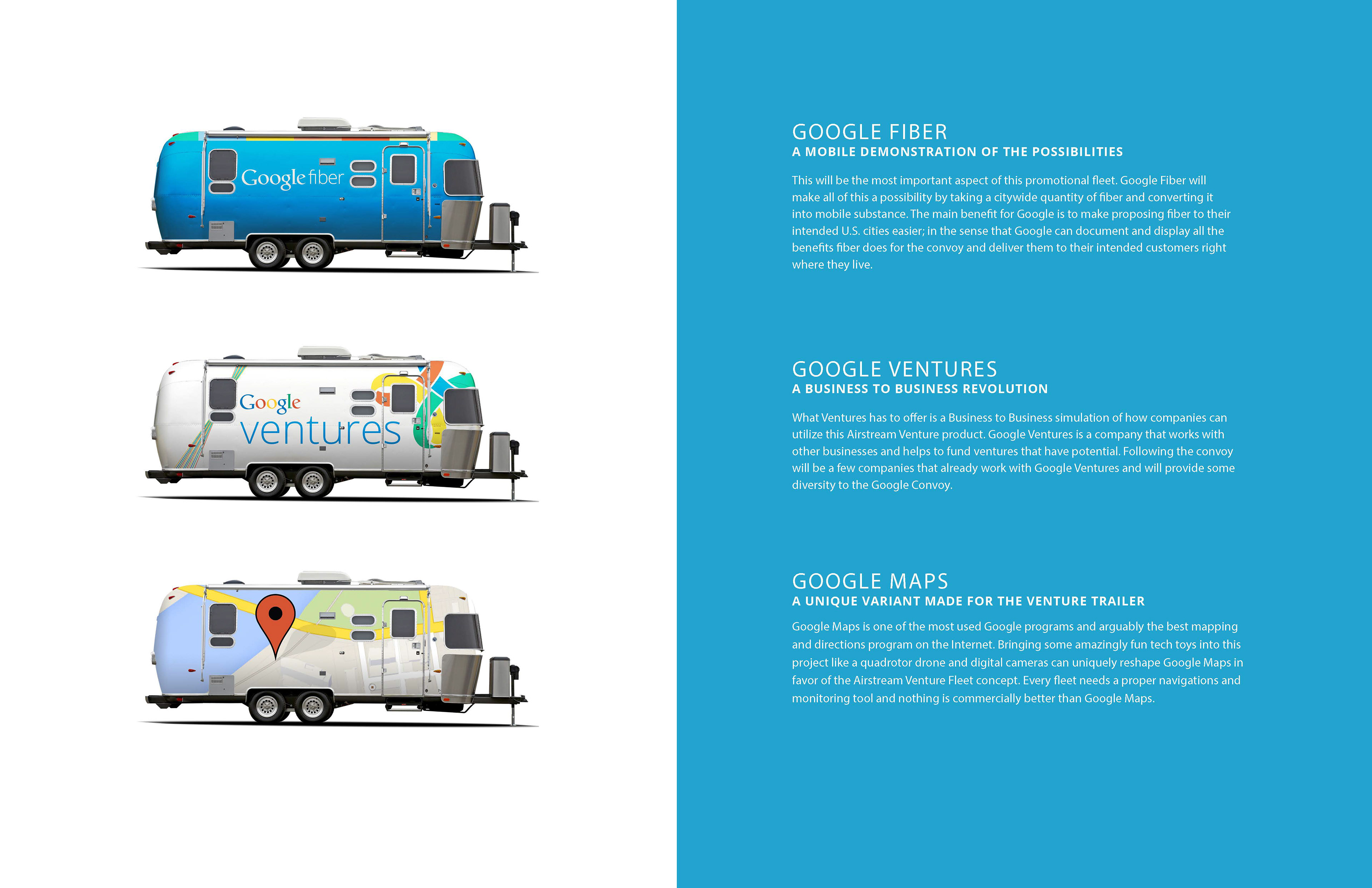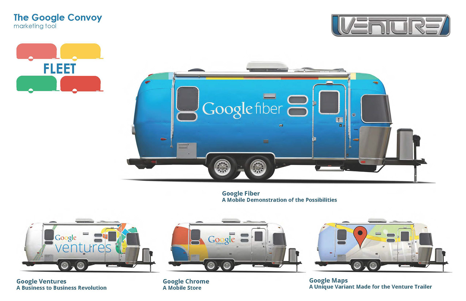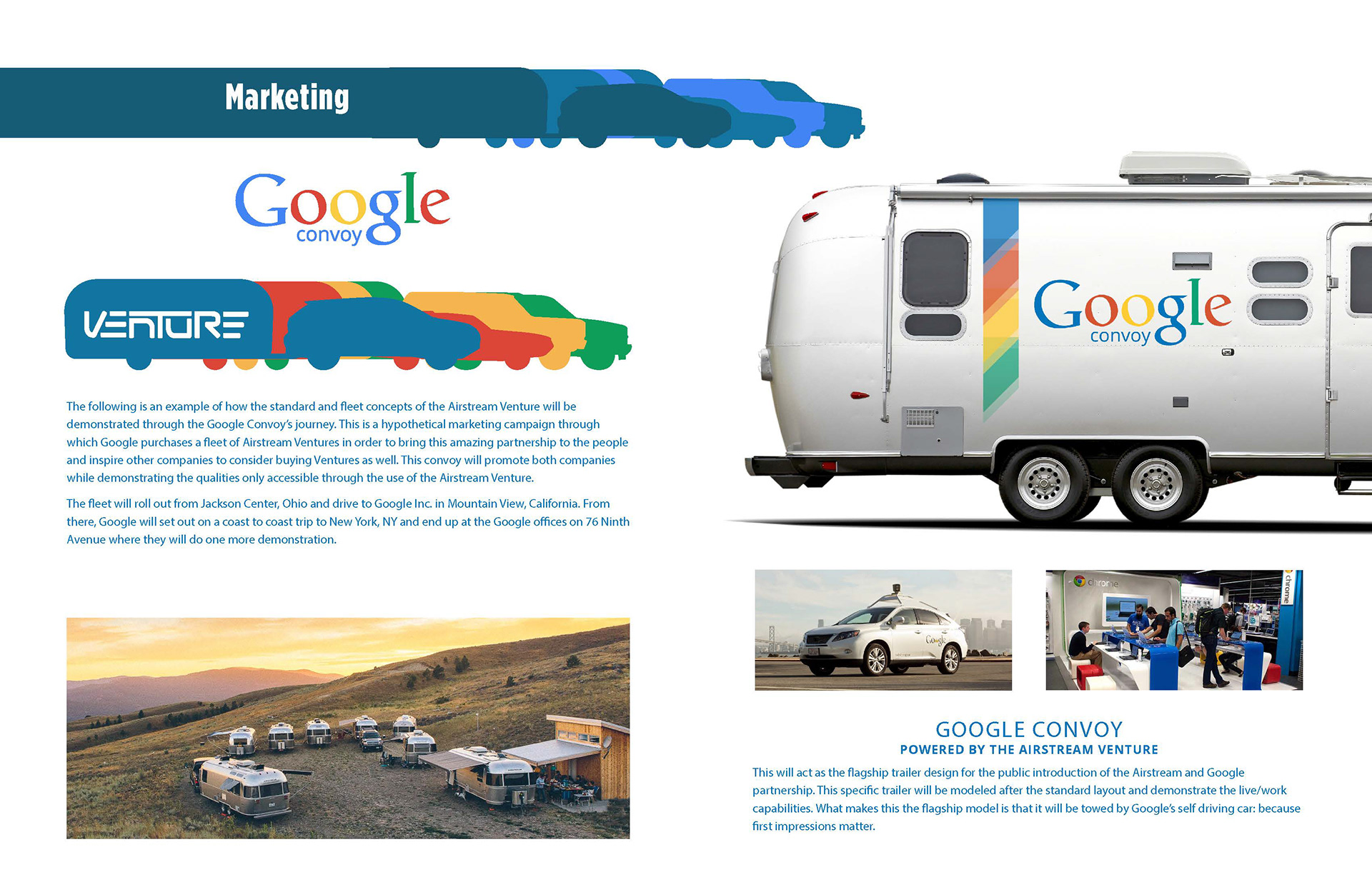 Cory Schorling, Seth Deere, James Carpenter When given the challenge of creating a corporate live-work Airstream trailer, this team thought way out of the aluminum shell and devised a series of specialized trailers to form the Airstream Venture Corporate Fleet. Then they took it up a notch and co-marketed the concept with Google, thereby updating the tech factor and making the mobility even more feasible. The Airstream client was very impressed. Photos of their Chief Marketing Officer and President are included.