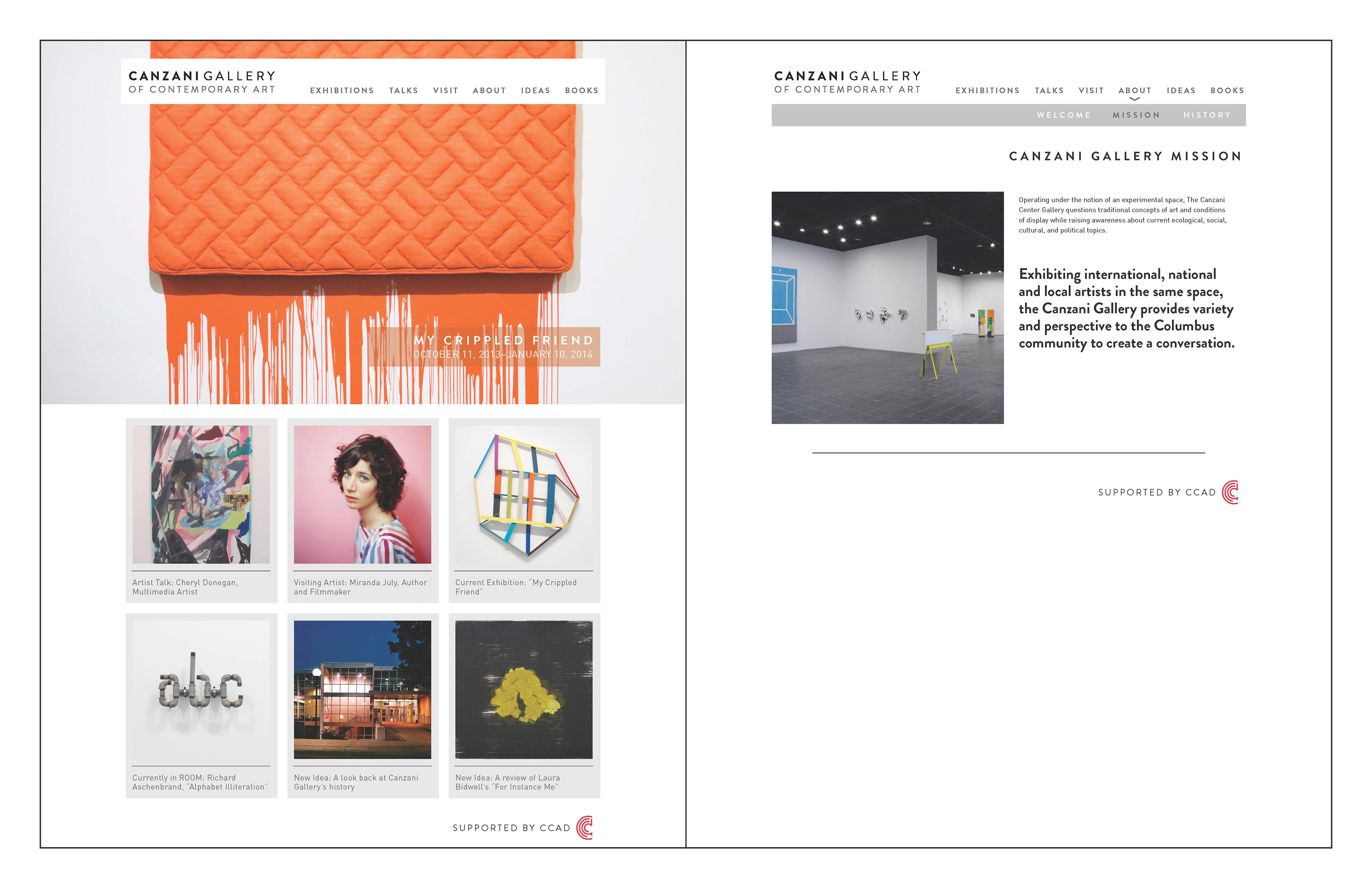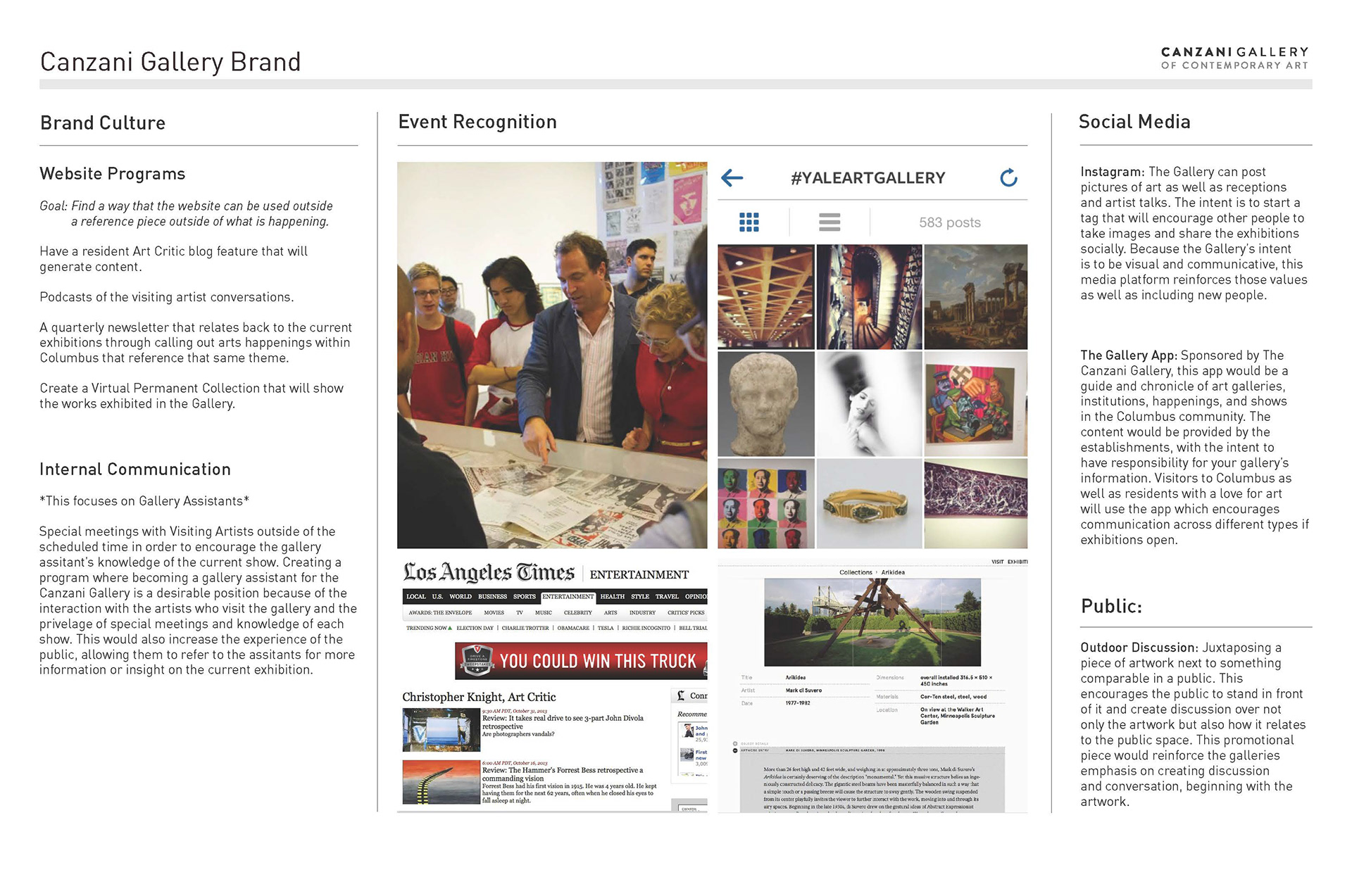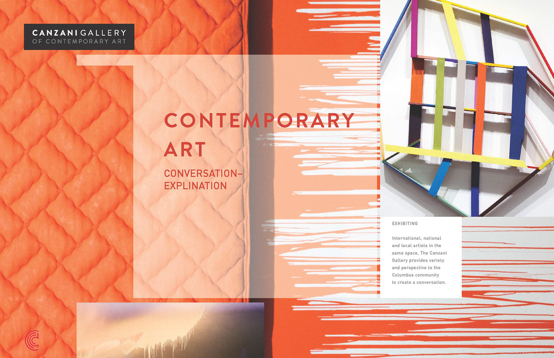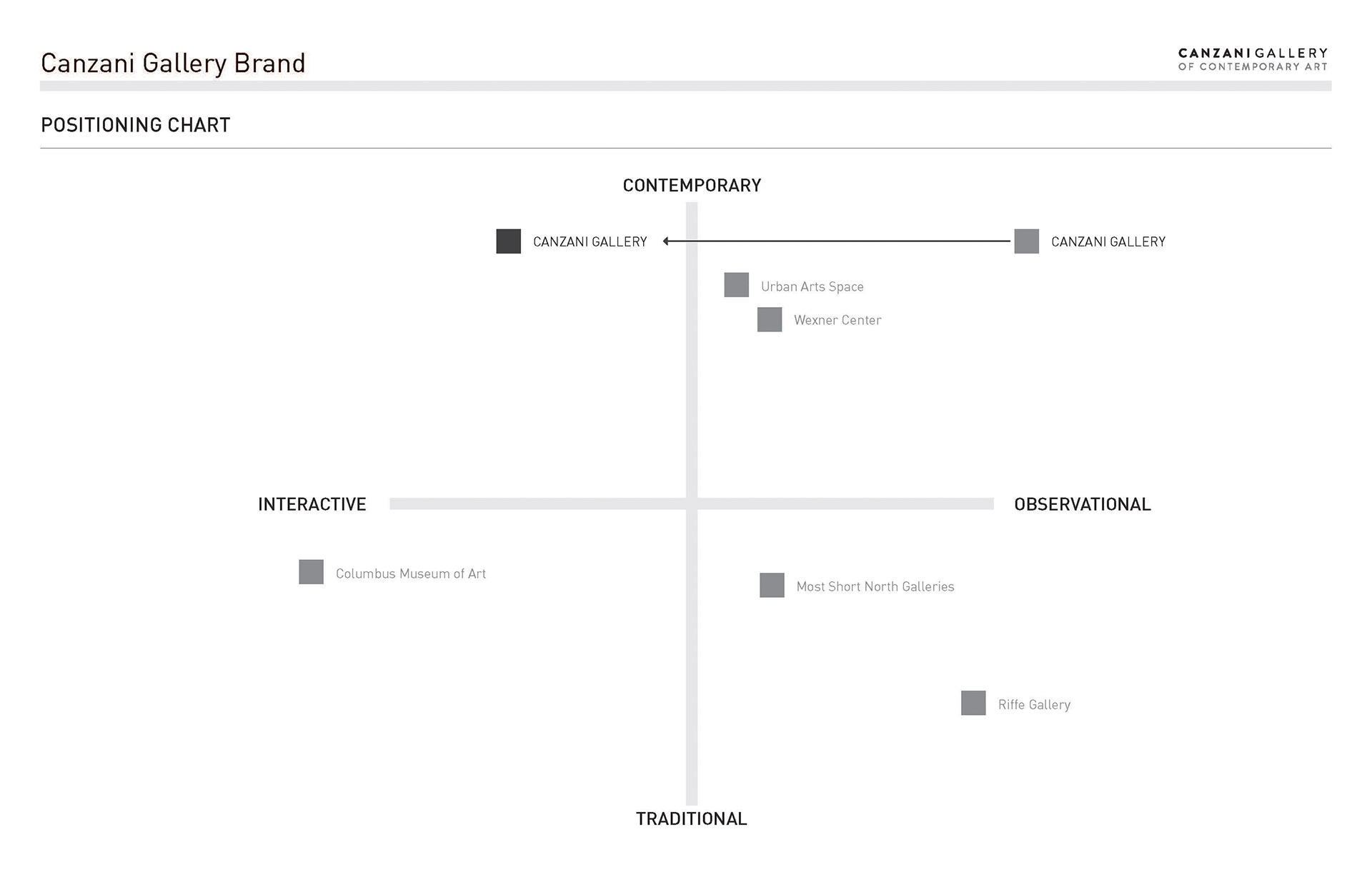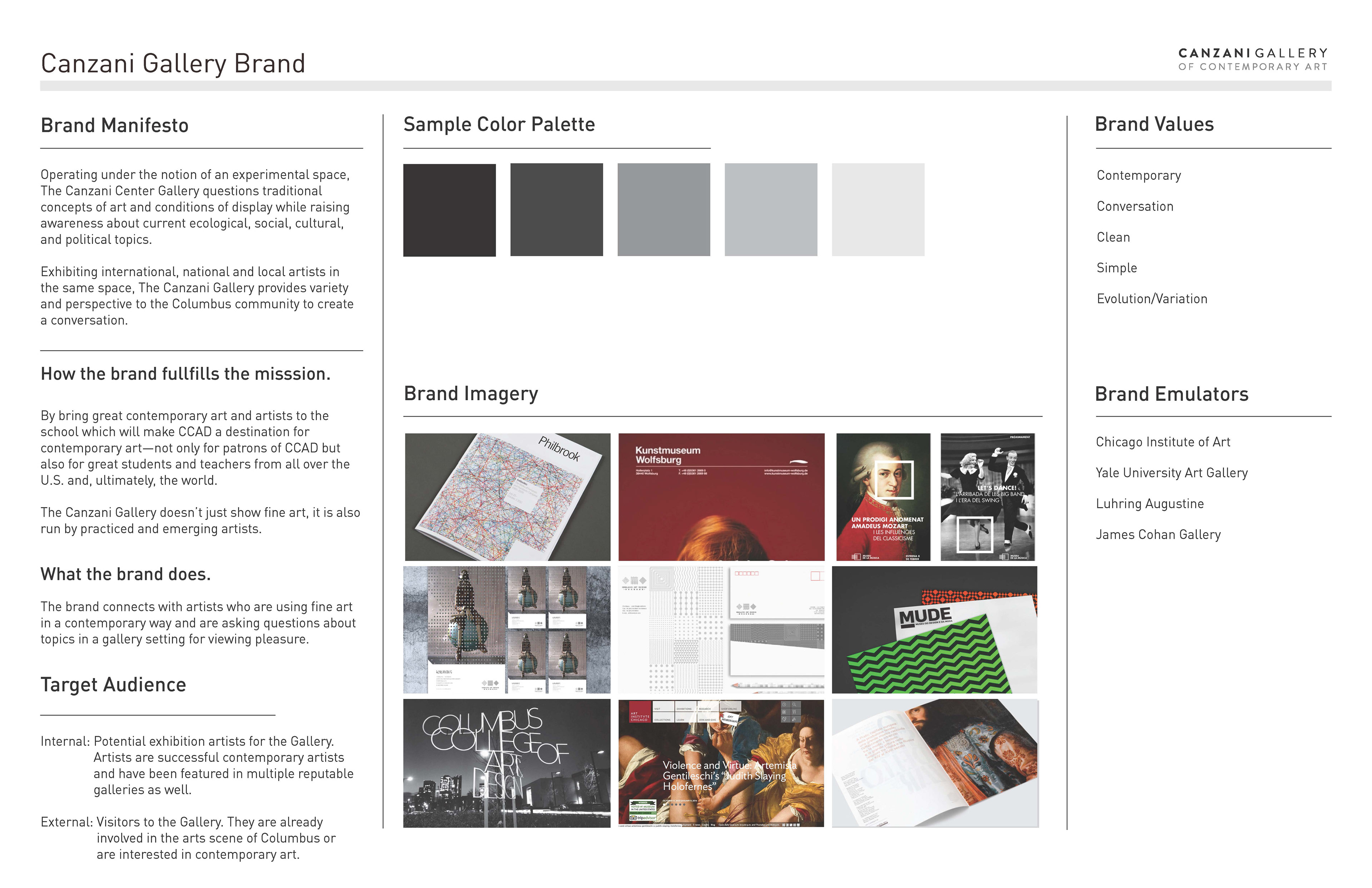 Danielle Williams, Sasha Bohn, John Steimle The positioning and branding the team did for the Canzani Gallery perfectly captures the sophistication and intelligence of the exhibits curated by its director, Michael Goodson. The grids and guideline are derived from research into the architectural surroundings and its artist-led mission. I encourage anyone visiting Columbus, Ohio, to make a point of visiting the gallery. You will be impressed and inspired.