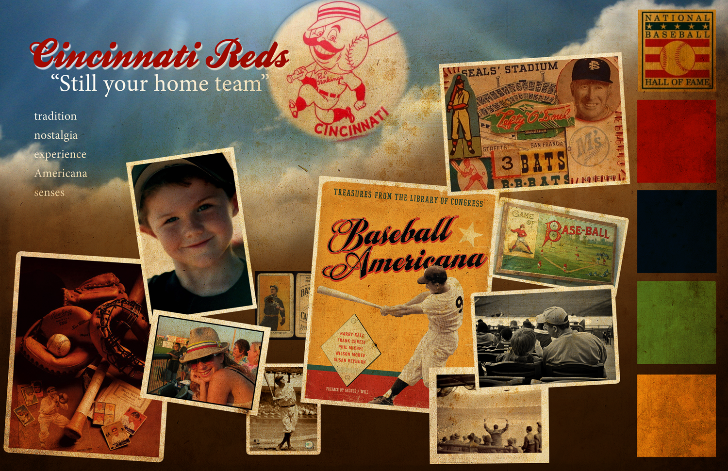 Rebranding of the Cincinnati Reds. "Rebranding the Reds? How are you going to do that?" Well, they showed me. Their research revealed that the Cincinnati Reds were the VERY FIRST professional baseball team...EVER. Forget the Red Sox and the Bronx Bombers. They also discovered an early tradition that the season doesn't begin until the Reds play their first game. What if the Reds celebrated the beginning of baseball every year and owned the season opener? What a great idea. Look through the work and you'll see the nuances that capture the heritage and values of America's pastime.