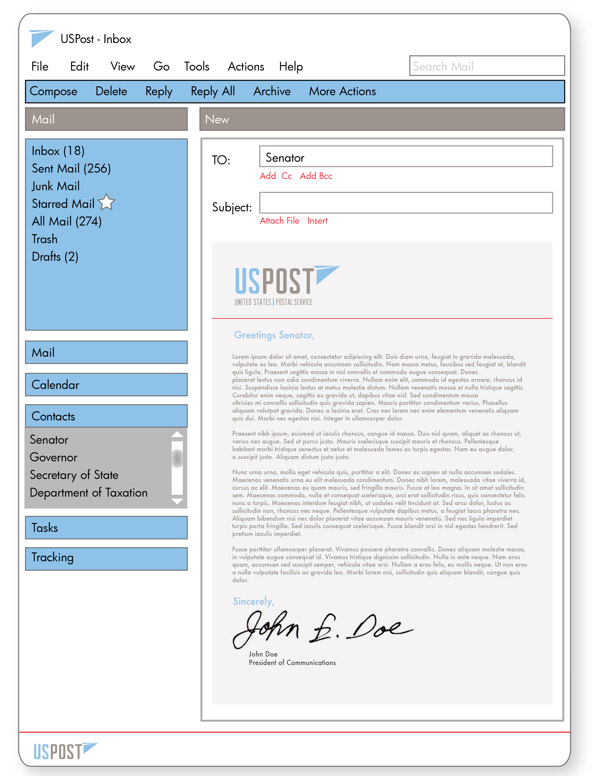 Megan Harvell and Jessica Alley Megan Harvell and Jessica Alley went whale hunting. If you’re going to rebrand a brand, why not pick one that was originally headed by Benjamin Franklin. I guess that qualifies as a tired and sleepy brand. After a little research, they identified the SWOT, (Strengths, Weaknesses, Opportunities, and Threats) of the USPS. For physical delivery of mail, I think they have a good monopoly on mass physical mailing. Let’s call that a Strength. Electronic mail? What may be considered a Weakness is actually a big Opportunity. Introducing your United States Postal Service email account. Have a beef with your senator? Email him. Want to sign up for your local congressman email blasts? Just click the “opt-in” button. Or maybe you forgot who your congressperson is? There’s an app for that. Need to keep track of your tax returns? Check your SENT folder. Connect with troops, courts, state parks, federal or local legislation. This is a terrific example of identifying the core purpose of your “brand” and how it helps identify the services it should provide. Not a campaign concept, but a brand concept. If Benjamin was around today, I’m sure he’d approve. Congrats to Megan Harvell and Jessica Alley, the creative team that birthed the creative and won a Silver ADDY in the process.