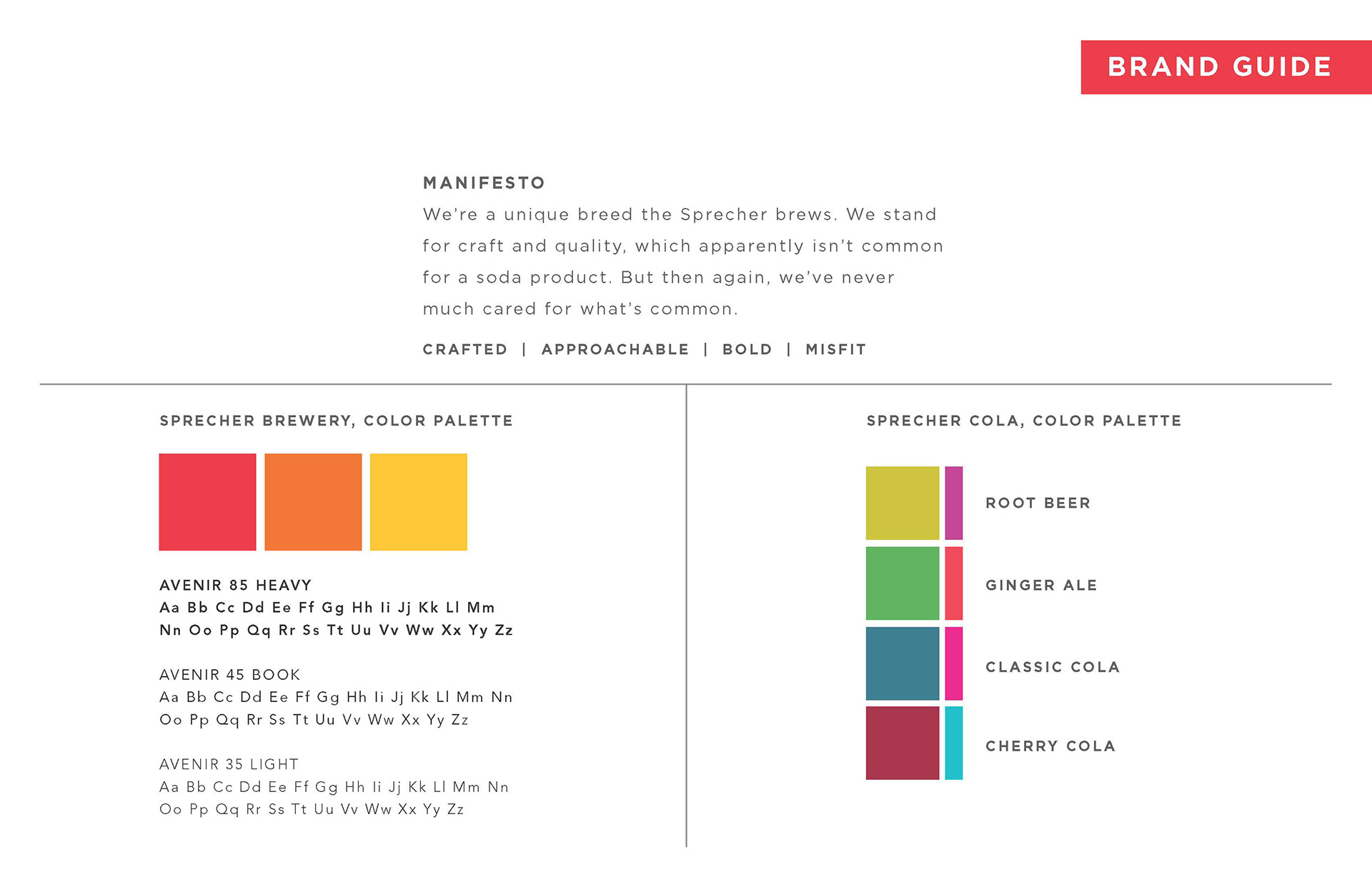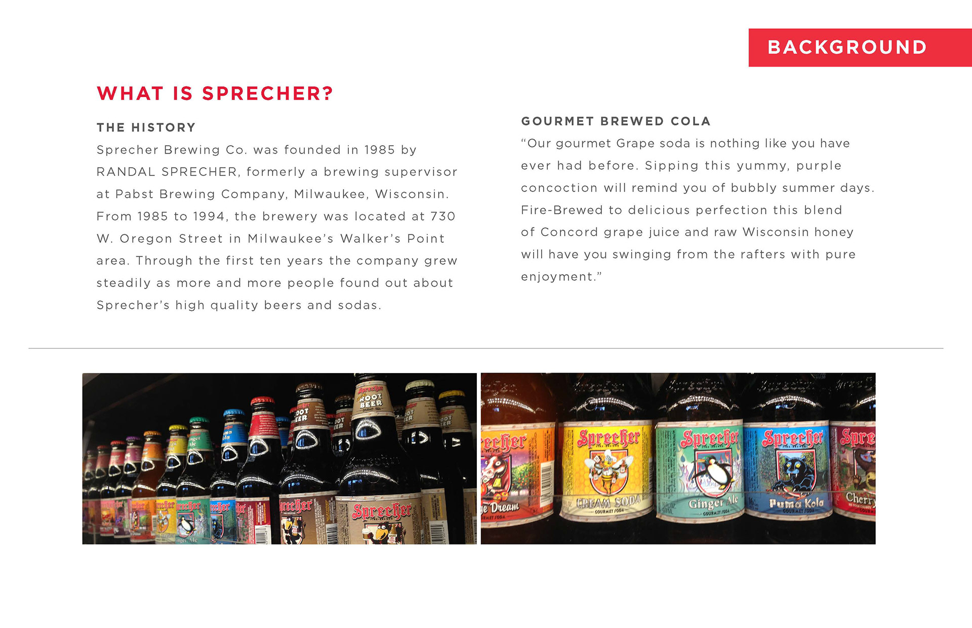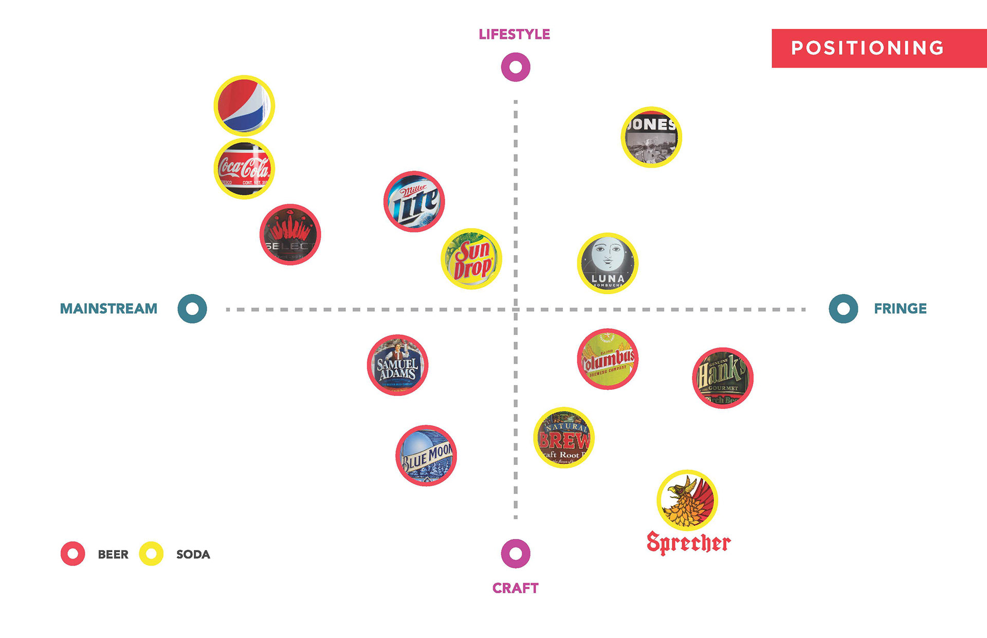 Jonathan Yurek, Haley Fischer, Anna Marshal The design and illustrations are so beautiful in this assignment, it's easy to miss the positioning and branding concept that is equally strong. Sprechers is a brewery/restaurant that also makes colas. By focusing on the same craftsmanship of brewing, they've elevated the sophistication and adult appeal of these unique flavors. If I was out for drinks with the guys, I could order a Sprechers cola and fit right in with the indie beer aficionados.