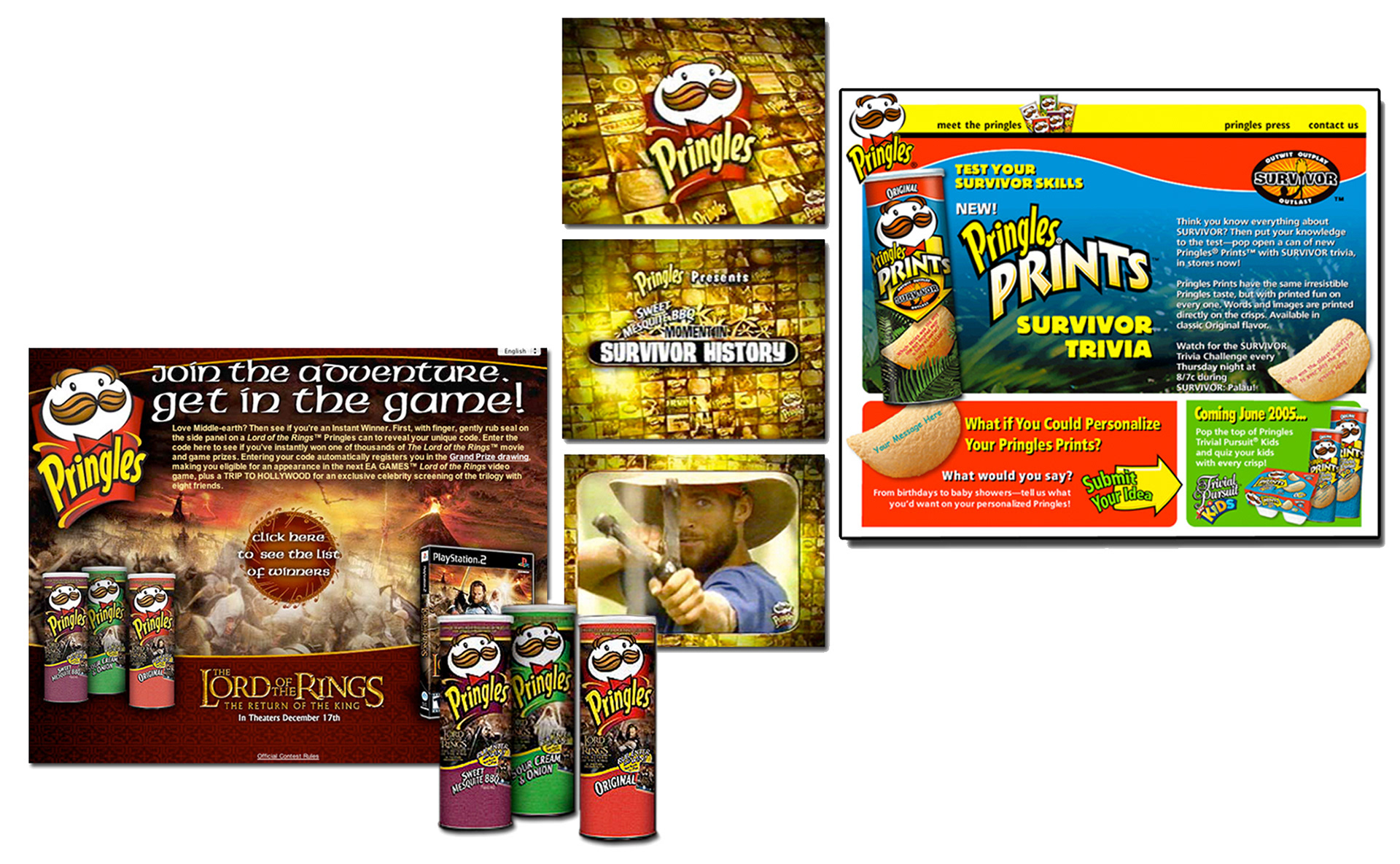 New flavors and product innovation was launched through the use of entertainment co-promotions. Commercials appeared after the Super Bowl and was used to support Pringles Survivor Trivia.