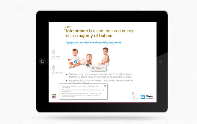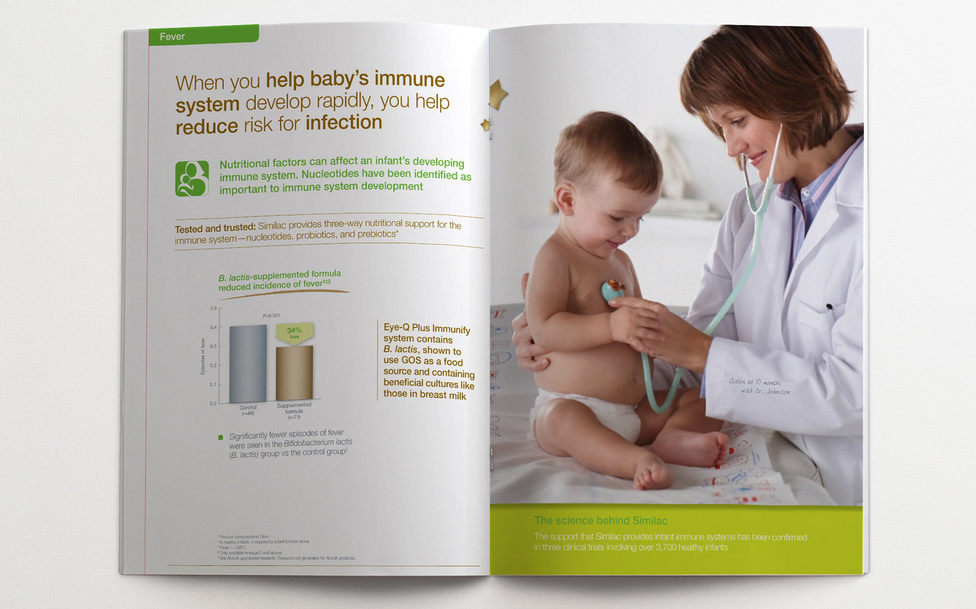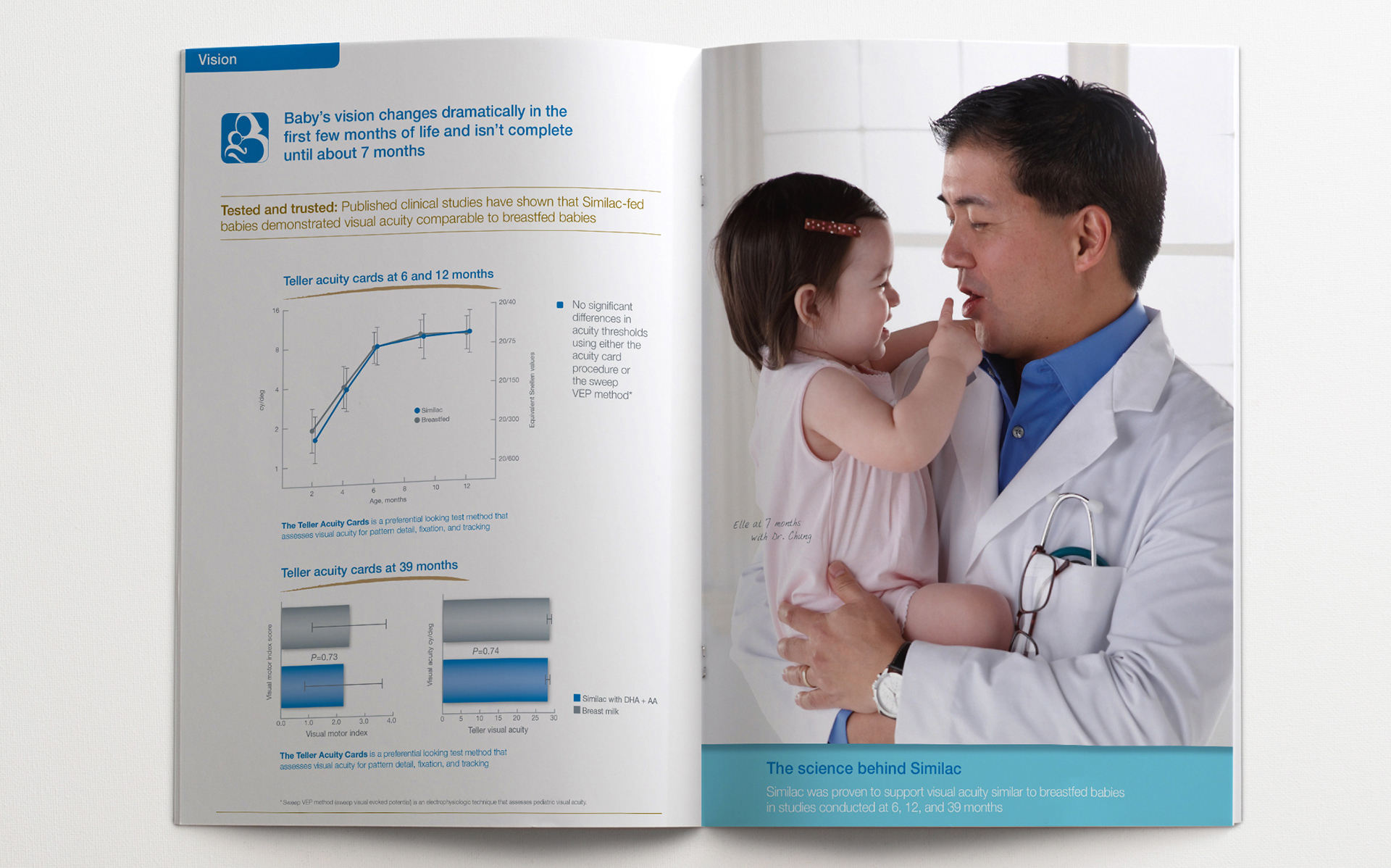 Similac global professional promotion A pediatricians relationship with it’s clientelle is both personal and professional as they promote the proper growth and development of a baby. We profiled that journey with the Similac sales material and highlighted the “science behind the care you give”. The science behind Similac was vividly illustrated with an interactive sales tool that allows representatives to discuss in-depth issues about infant feeding. The flexible format provided a variety of topics with comprehensive information. Similac Credits: Associate Creative Director Christian Blanco Senior Art Director Sebastian Pallini Senior Copywriter Megan Meyers Senior Interactive Designer Eric Hughes